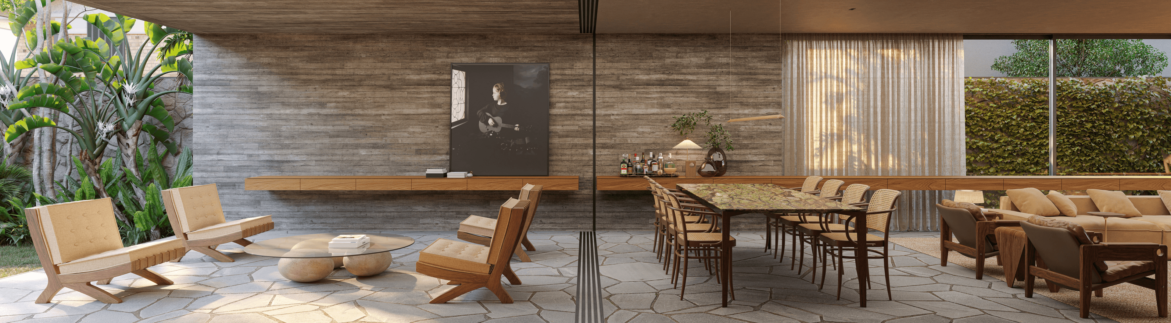 Situada no coração dos Jardins, a Casa LBF combina a atmosfera urbana paulistana com soluções arquitetônicas que priorizam conforto e privacidade. Em quatro pavimentos, a residência explora o uso do concreto aparente e muxarabi em madeira, criando uma linguagem contemporânea e acolhedora. O gerenciamento da Fort garantiu a integração entre arquitetura, paisagismo e execução em alto padrão.