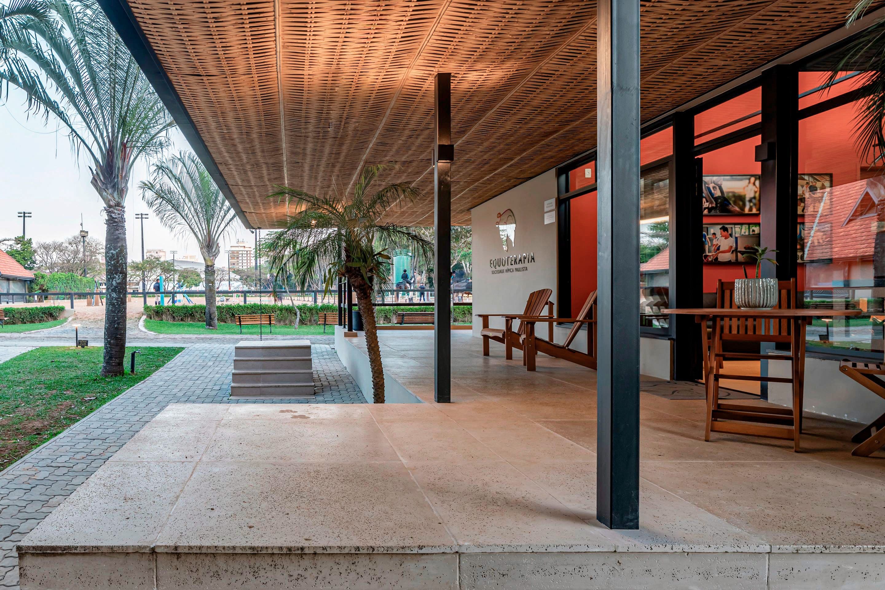 Projeto de retrofit da área de Equoterapia da Sociedade Hípica Paulista, localizada em São Paulo. O projeto, desenvolvido pela arquiteta Vera Domschke, buscou modernizar e ampliar a estrutura existente na hípica, aportando acessibilidade, frescor e acolhimento.